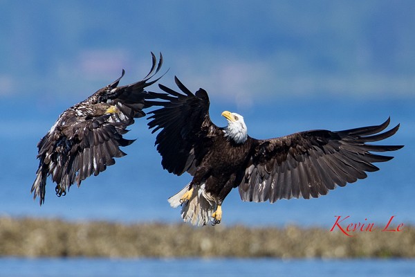 | 2 con Bald Eagle gườm nhau trên không trung. |