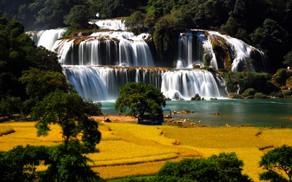 | Mùa lúa chín ở thác Bản Giốc thật qưến rũ |
