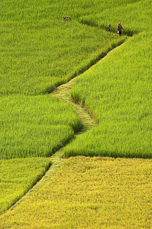 | Bờ ruộng, ngoài nhiệm vụ chính của nó, còn là lối đi tắt quen thuộc của người nông dân. Cái cảm giác chạy trên bờ ruộng làm sao quên được! Rất lạ, vừa chạy vừa phải giữ thăng bằng như làm xiếc vậy... nó rất khác với cảm giác đi trên bất cứ địa hình nào... |