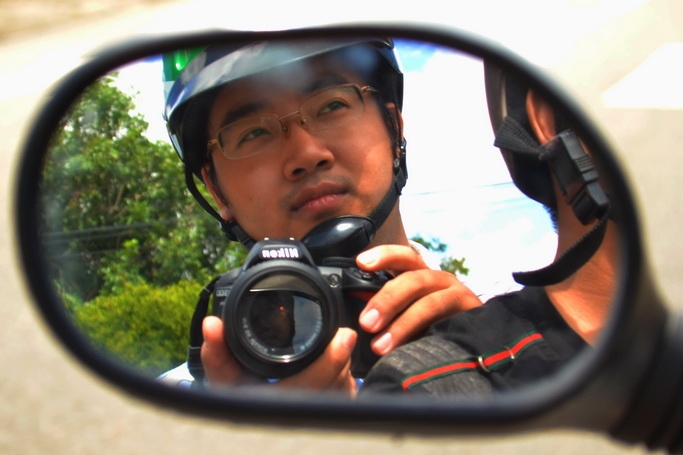 Ảnh tự chụp để làm avatar, quảng cáo luôn cho Nikon và cũng là để cổ động phong trào "Đội mũ bảo hiểm".